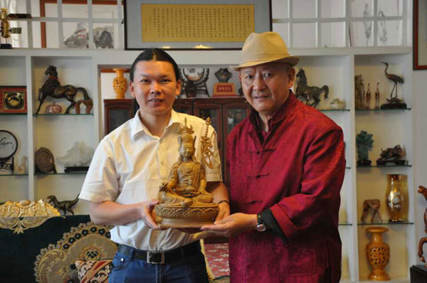 艺术家汪金鹏(左)与原省委副书记、中国文联副主席丹增(右)