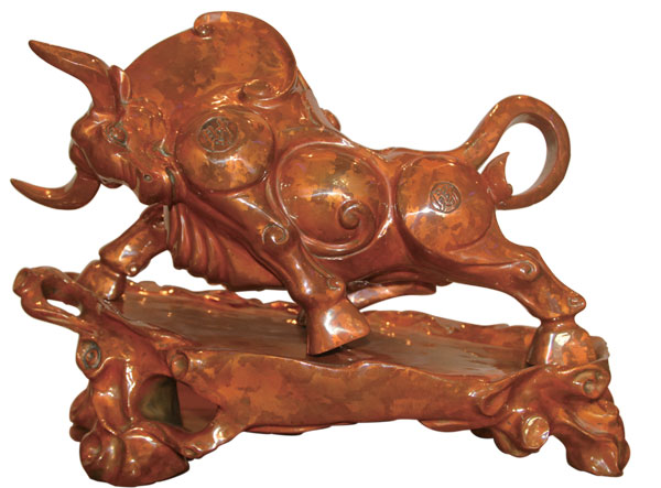创新的脚步永远不会停止。在熟练掌握了烧斑技巧和斑铜制作工艺之后,善于琢磨和创新的“雕神”汪金鹏,又开始思考怎样在传统的斑铜艺术上,再进行创新和升华,让古老的、传统的斑铜艺术,更加具有新的艺术感染力和时代气息,并具有更强的市场号召力。