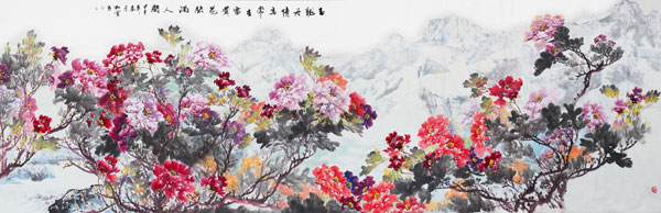 牡丹又名洛阳花、富贵花,是中国特有的花卉之一,被誉为花中之王。牡丹雍容富贵,是吉祥繁荣的象征。牡丹在我国历史悠久且有着特殊的地位,被奉为国花。在新中国65华诞即将到来之际,云南艺馨园签约画家刘松会先生创作了数十幅牡丹画作,举办主题为“国庆国花别样红”的专题牡丹绘画汇报展,为春城之秋平添一道亮丽的风景。