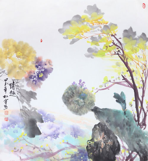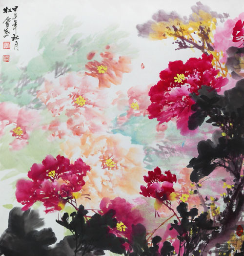 怎样才能把牡丹画出特色,是每个喜爱画牡丹的人士一直钻研和思考的问题。其实,从雅与俗的艺术辩证关系来看,大俗即大雅。就是这样一个在常人眼中看似大俗的题材,在出生于牡丹之乡的刘松会先生笔下却能画出大雅来。再一次证明了没有俗的题材,只有把题材画俗了的画家。