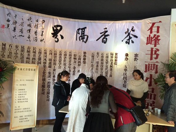 由云南省青少年书法家协会、云南传统蒙学研究会、《云南画报》社、五华区文联等共同举办的“石峰书画小品展”于131215在昆明市五华区图书馆拉开帷幕。著名书法家、云南省文史馆馆员赵浩如,云南省文联原主席郑明及原副主席段斌、云南传统蒙学研究会会长郑千山,昆明市文联副主席李永坤、五华区文联主席布艳芬,五华区文体旅游局局长、五华区书画家协会主席张耀勇、五华区图书馆馆长周赤东、古琴演奏家宁娜等100余人出席书画展开幕式。