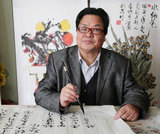 张地君自幼酷爱书画创作,数十年如一日利用业余时间刻苦研习篆、隶、楷、行、草、魏碑等书法艺术及中国水墨画。一边当医生为患者解除痛苦,一边拿起毛笔练字作画,长期坚持、孜孜不倦。工作之余,他的大部分时间都用在了艺术创作上,几乎每天都要熬夜创作,尤其是当他三十年前得了癌症之后,更是抓紧一切时间创作,经常凌晨4点多就起床练字作画,他希望在有生之年能为后人多留下一些作品。正是由于他的专注和持之以恒,使得他在医学上和艺术上都获得双丰收。