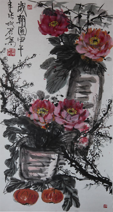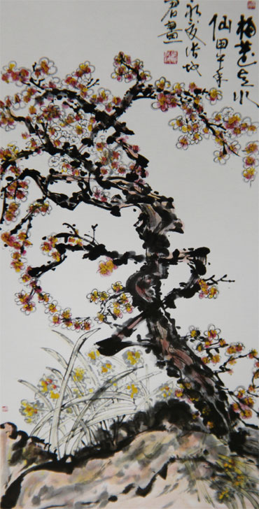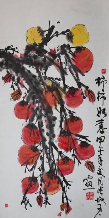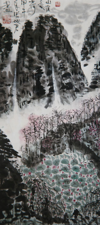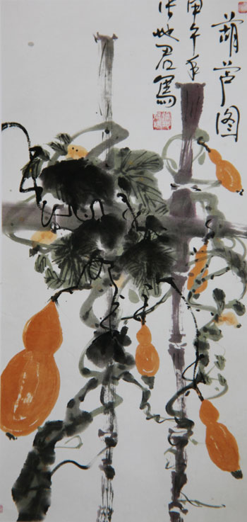 纵观张地君的画,无论是水墨山水画,还是花鸟画,都不只是简单地突出对景物和动物的描绘,而更多是将其思想寓意在画中,让作品中的景物和动物鲜活起来,更具神韵。他在色彩搭配、景物布局和线条描绘上都非常具有独到之处,首先他体现的是色彩的美感,还要突出表现他要表达的主题思想,把其放在最显眼的位置。其次,在表现形式上,他通过中国画的大写意,运用水墨与幻化色彩交替,传统与现代结合,医学与艺术结合,使得他的画不同寻常,耐人寻味。