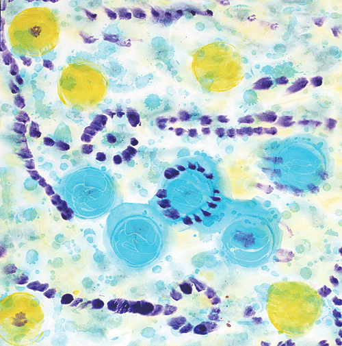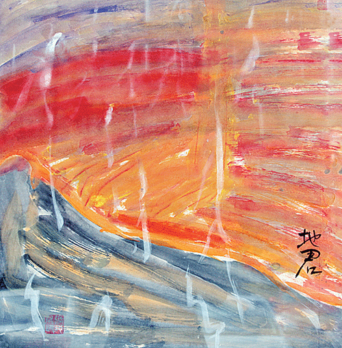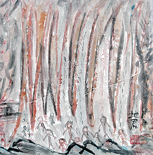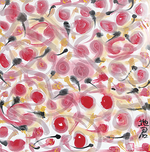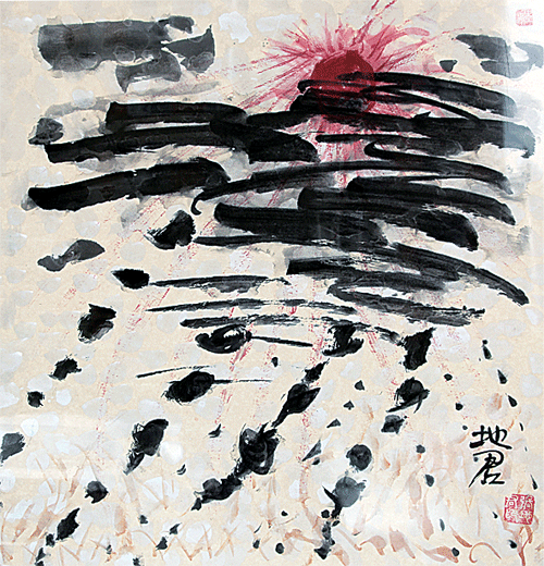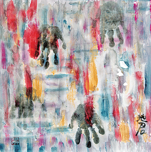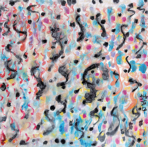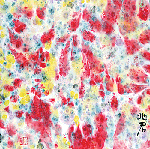 张地君在宣纸上运用中国特有的毛笔、墨、水分和色彩尽情尽性地驰骋挥洒,幻绘出各种有意无意的富有丰富艺术趣味的效果,他在这过程中获得创造的愉悦和满足。但这就是我们认识和理解现代水墨画,这就是抽象画之所以给人带来丰沛的审美激情与思考的关键所在。“进行抽象水墨创作艺术的艺术家不可能脱离情境,因为每一个艺术家都在生活体验中获得生活态度。这种态度引导你走进真实,这种真实决定了你的思维观念。”这实际上是一种内心真实的表述,即“技艺”在他的水墨作品中并不是表现的主角,重要的是内心世界的表达,即对生命、对社会、对人类真情实感的体悟。结合他作品中隐约现出的社会转型期,人们思维方式、生活方式的交换、颠覆、挤压、解构等所引起人们的深刻思考,使得现代水墨获得在文化和审美的双重价值。
