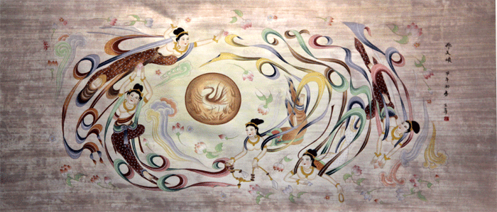 敦煌,这座世界上最大的艺术宫殿,这座充满神秘色彩的艺术世界,令无数的艺术家们为之痴迷,其中最有名的当属张大千先生“面壁三年”的事迹。通过三年的敦煌壁画临摹,张大千先生的艺术倾向发生了改变,为其艺术面貌走向成熟发挥了重要作用。很多艺术院校的学子都有过到敦煌考察写生的经历,但由于自然条件或者文物保护措施的限制,不能充分领略这座艺术宫殿的魅力,虽然每次都有不同的收获,但总是意欲未尽。此次画展选取了自魏晋南北朝以来的敦煌石窟及周边榆林石窟的部分壁画精品多幅,从题材内容上看,有佛经故事、佛像、飞天、供养人、藻井等。其中不乏鸿篇巨制,画面造型多样,线条凝练,色彩瑰丽,整体饱满丰富,再现了敦煌壁画艺术的辉煌。在敦煌莫高窟里,靠手电光才能隐约可见的精彩壁画,通过这个画展却可近距离细细观赏!并可以现场学习临摹古代绘画技法,从艺术的角度感受中国优秀传统文化的魅力。