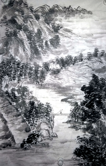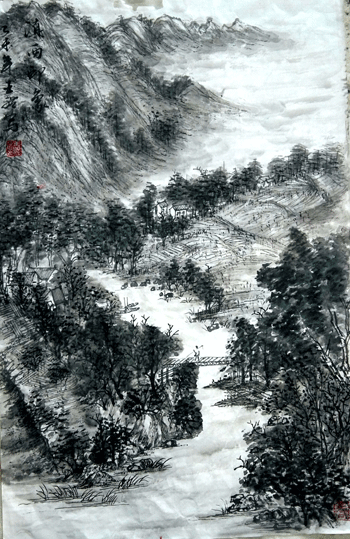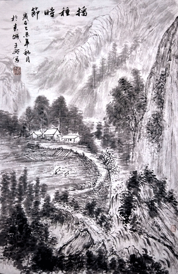 王体是一个在中国传统文化上孜孜矻矻、锲而不舍的人,沉醉其中,怡然自得,他说:“我在学习书画的过程中,一直广泛地涉猎诸家,目的是为了拓宽眼界。平时注重临摹,崇尚写生。在绘画上,尊崇‘外师造化,中得心源’的原则。在大量临摹、写生的基础上,追求并且达到艺术精神上的质变,变别人的、自然的东西为自己的东西。”而作为云南的书画家,王体可谓得天独厚,身边处处是美景,处处美景堪入画。故而除了大量临习宋代山水画外,每到稍有闲暇时候,他就背起行囊,走进山里,深入乡村,在最能亲近自然、贴近造化的地方,支起画架,向山川学习,向自然学习,在真山真水里丰满着自己的胸臆,丰富着胸中的山水。清代郎芝田有云:“画中丘壑位置,俱要从肺腑中自然流出,则笔墨间自有神味也。若从应酬起见,终日搦管,但求蹊径,而不参以心思,不过是土木形骸耳。”诚哉斯言!如果不在枯寂繁复的写生中积累,并通过在写生中的过滤和思考,哪里会有肺腑中的“丘壑”?故《中庸》中有句,“君子之所不可及者,其惟人之所不见乎”,正是在这人所不见之时,王体在山水写生方面倾注了大量心血,忠实地中践行着自己的艺术原则,于是他笔下的山便日比一日地雄浑,他笔下的水也日比一日地旖旎!