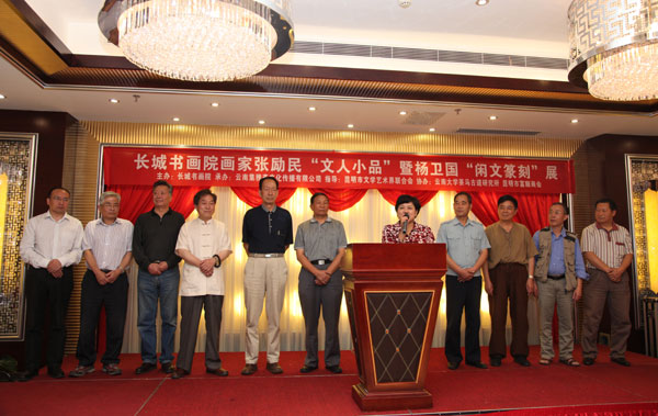 7月14日,为期10天的云南长城书画院画家张励民“文人小品”暨杨卫国“闲文篆刻”展在昆明市鑫龙小区10栋云南集雅斋文化传播有限公司拉开帷幕。